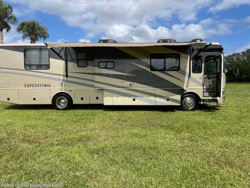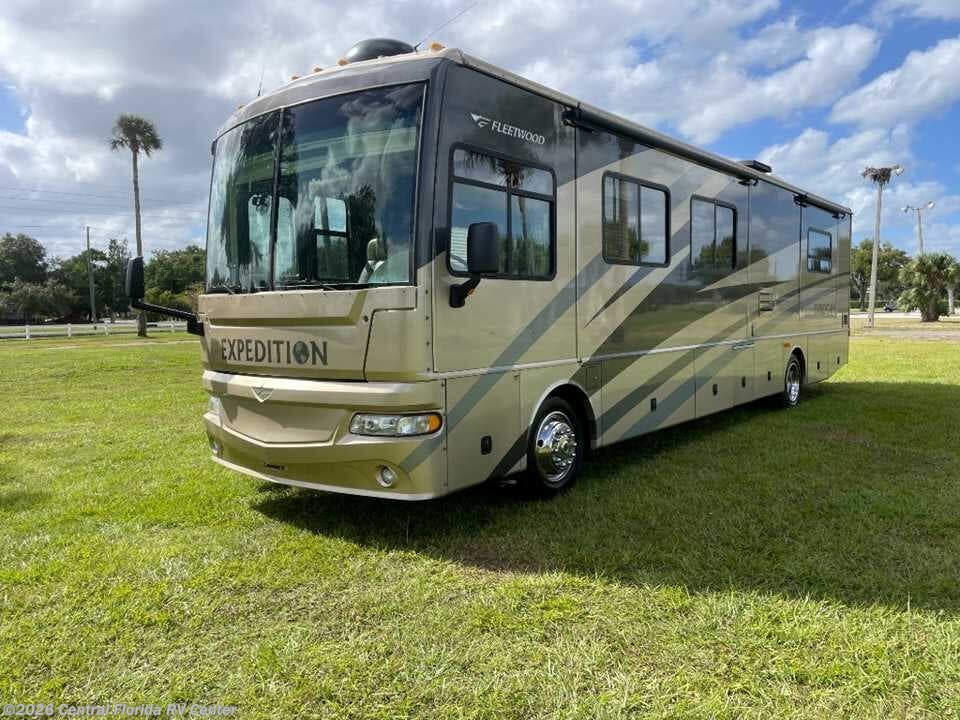 2006 Fleetwood Expedition 38S 3 slide motorhome with 42,797 miles. This coach is on a Freightliner Chassis powered by a 300HP Cat C7 Diesel Engine. You‘ll always feel at home in the totally redesigned ‘06 Expedition. Marvel at the stylish redesigned front/rear caps with beautiful full-body paint option, featuring sleek exterior graphics. You‘ll appreciate the interior, boasting tall 84" ceilings for a spacious open atmosphere, and redesigned larger windows allowing more natural light in. You‘ll also enjoy the luxury of dual air conditioning units for the utmost in comfortable travel. You‘ll feel like you never left home in Expedition‘s well equipped galley. Fix anything on the menu with the 22" 3-burner cook top and the large high powered convection microwave oven (1.4 cu. ft.), which cooks like a conventional oven but in half the time. Sleep will always come easy in Expedition‘s plush and luxurious bedroom quarters. The queen-size bed, with the spacious slide-out, helps to open the entire bedroom area up. For ‘06, enjoy the redesigned interior decor. In the bathroom, you‘ll always have the luxury of whole coach water filtration, providing fresh filtered water for brushing your teeth. Please feel free to call our toll free number 1-8-hundred-569-1979 We will be happy to walk through the unit and describe everything we see. We can also do a facetime if you like. My cell number is three two 1-66three 87six 5. When you arrive here, the coach will be exactly as described and discussed. You can be assured that your trip here will be well worth it! We have easy financing available for up to 20 years with good rates.