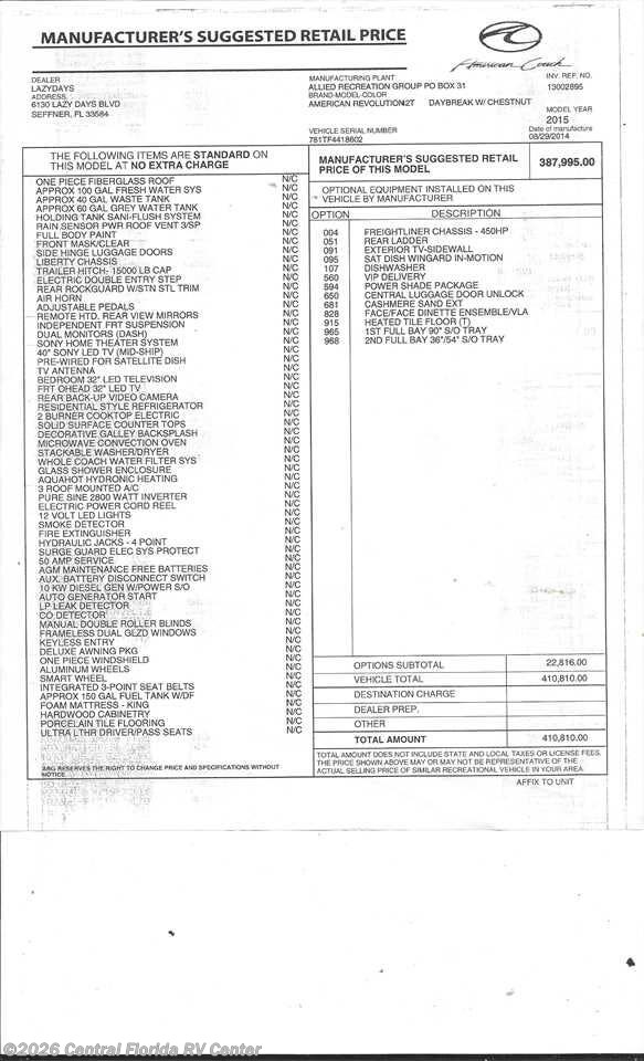 "Found the RV we wanted at Central Florida RV Center. Made the deal and drove down from Ohio. Great people. RV was as described even better. Great people highly recommended."