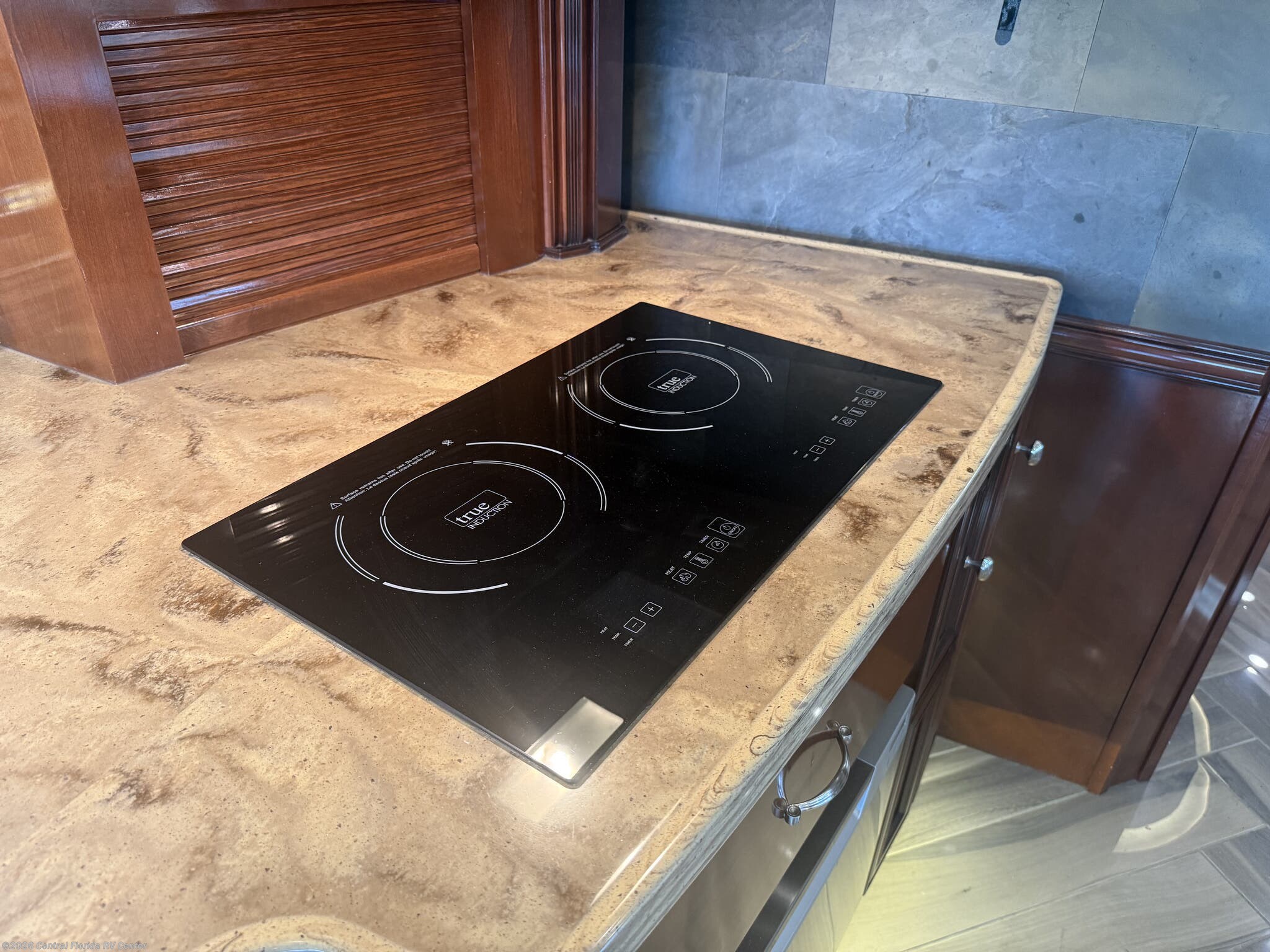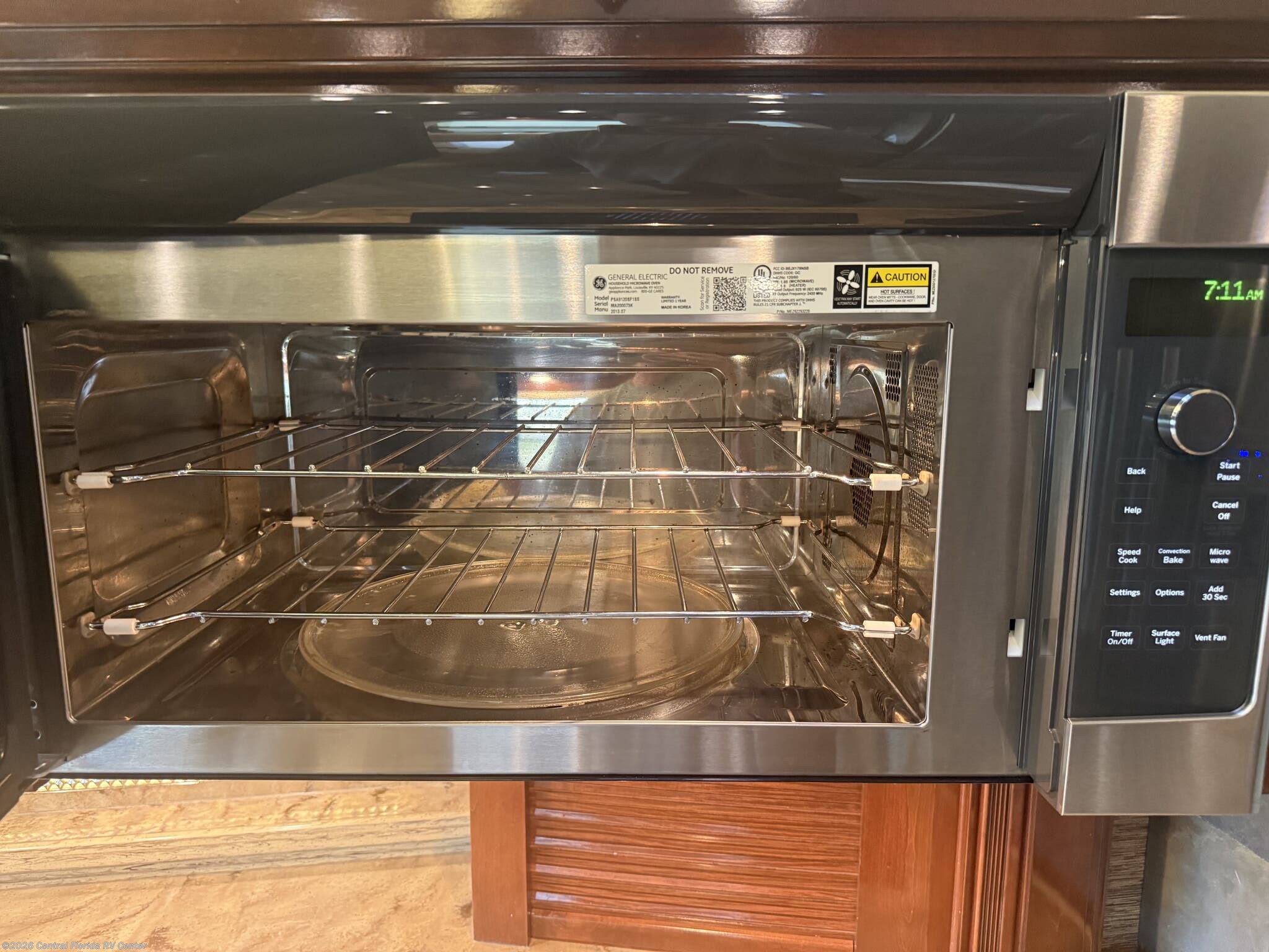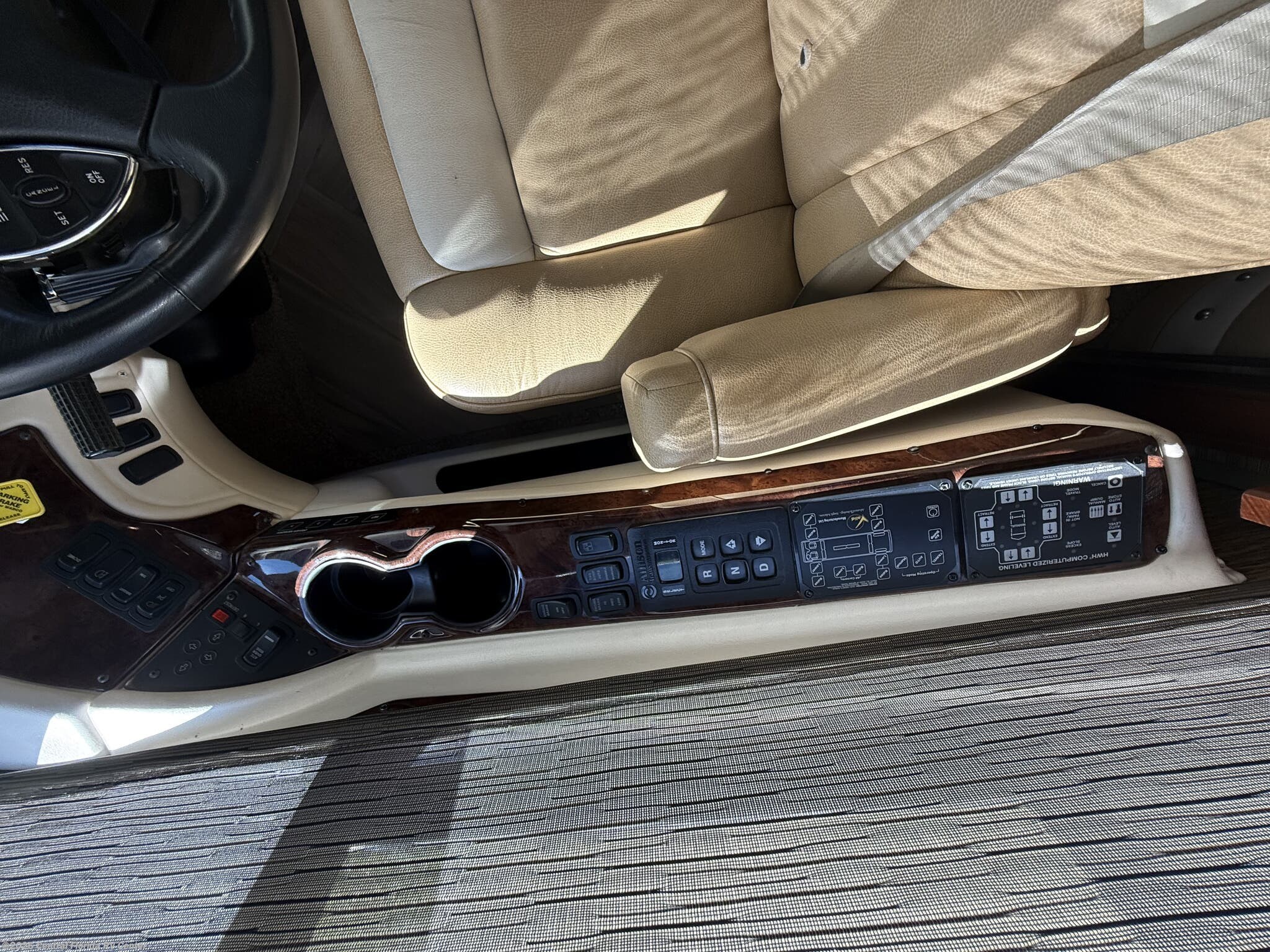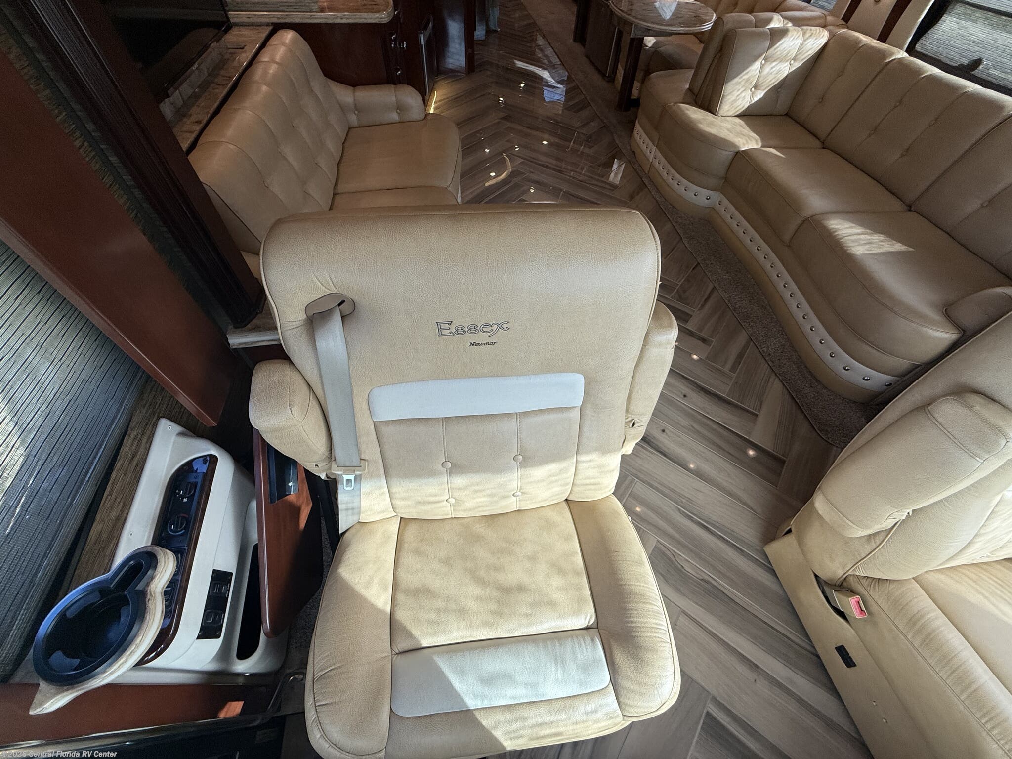 She looks stunning with her custom Poppy FBP, Dune interior, special order Ginger Glazed Maple Hi-Gloss Cabinets, stainless steel trim and Alcoa Dura-Brite aluminum wheels with Michelin tires that have less than 5,000 miles on them.