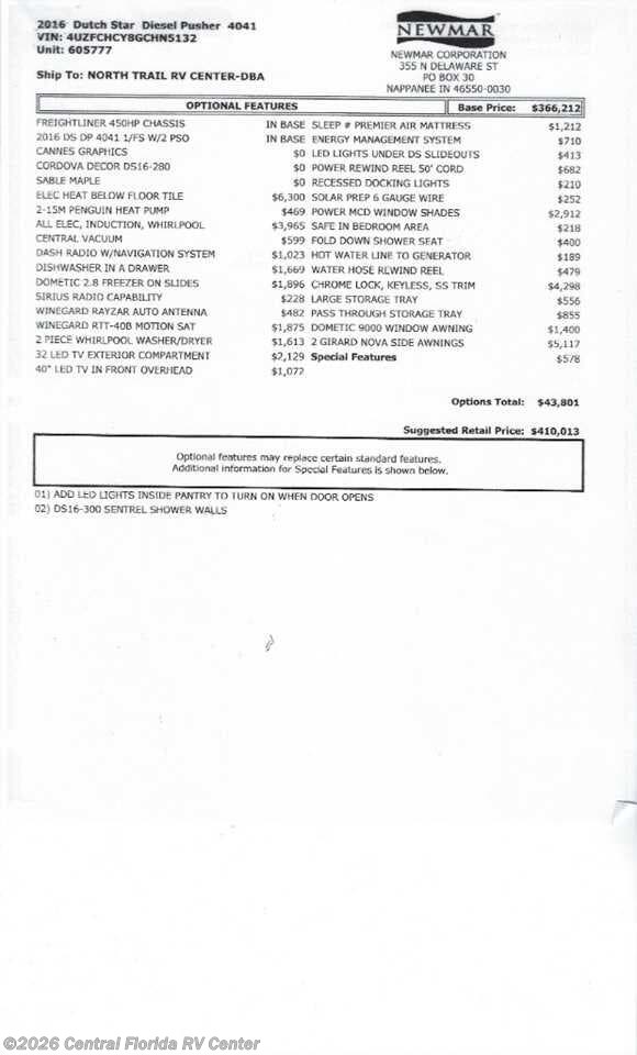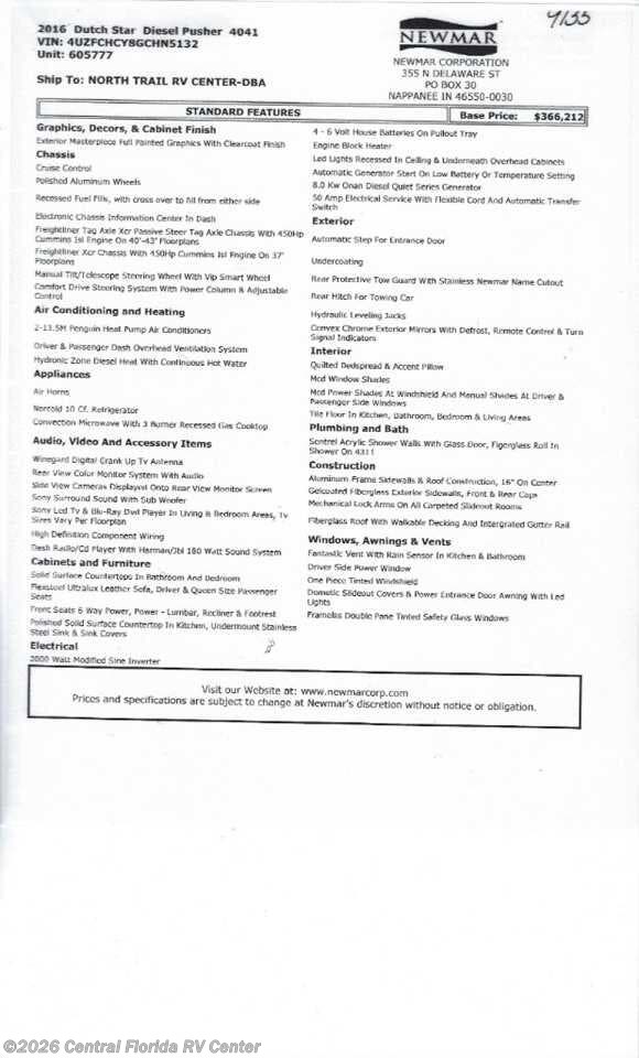 "Found the RV we wanted at Central Florida RV Center. Made the deal and drove down from Ohio. Great people. RV was as described even better. Great people highly recommended."