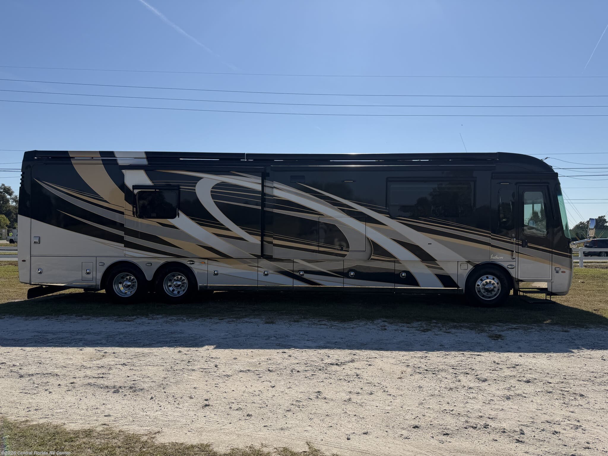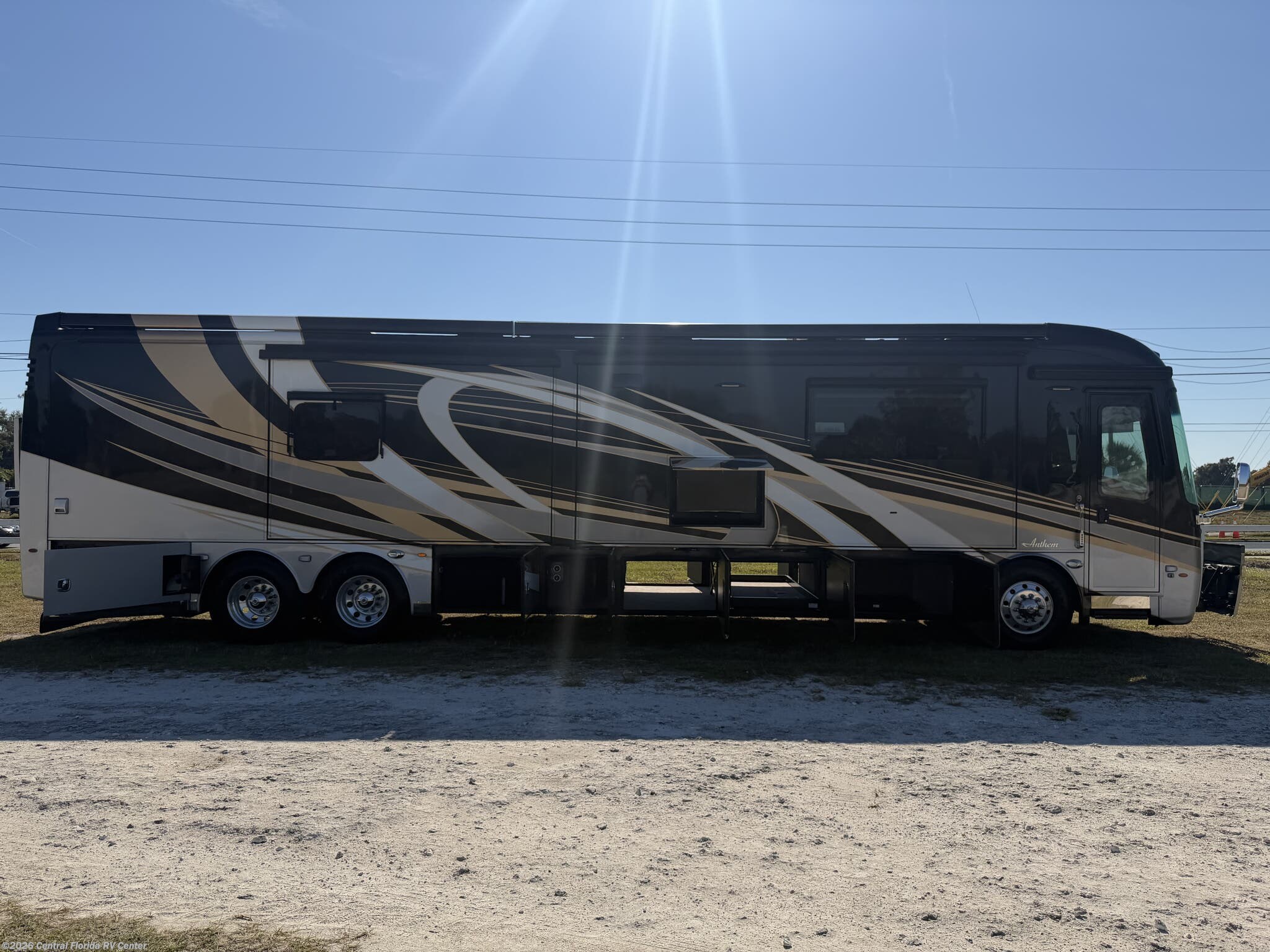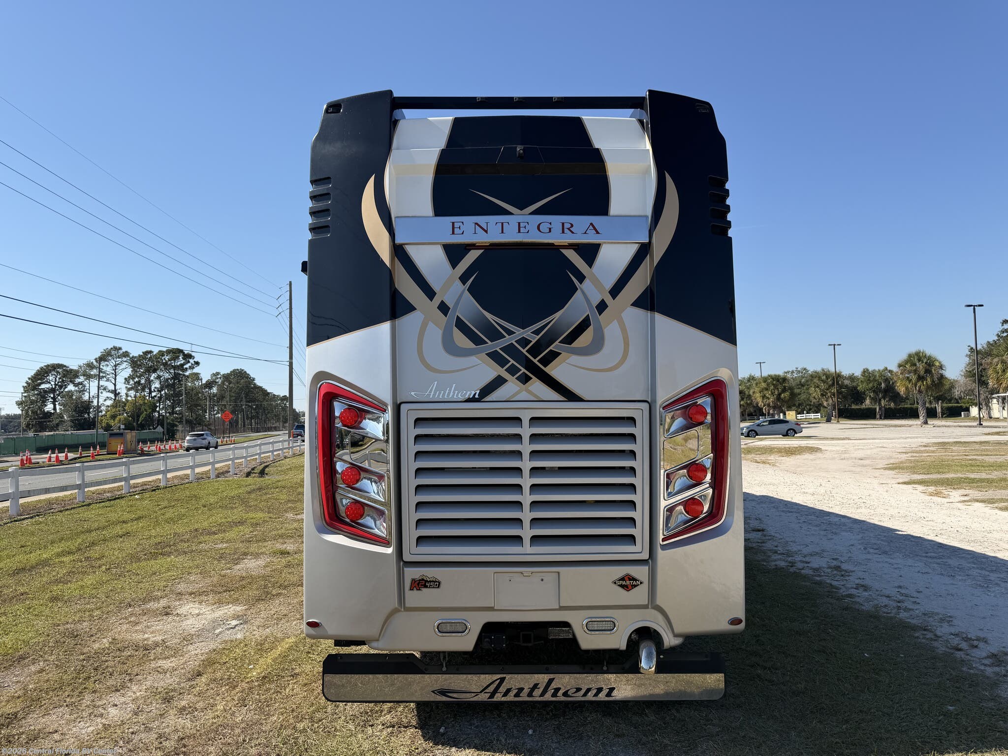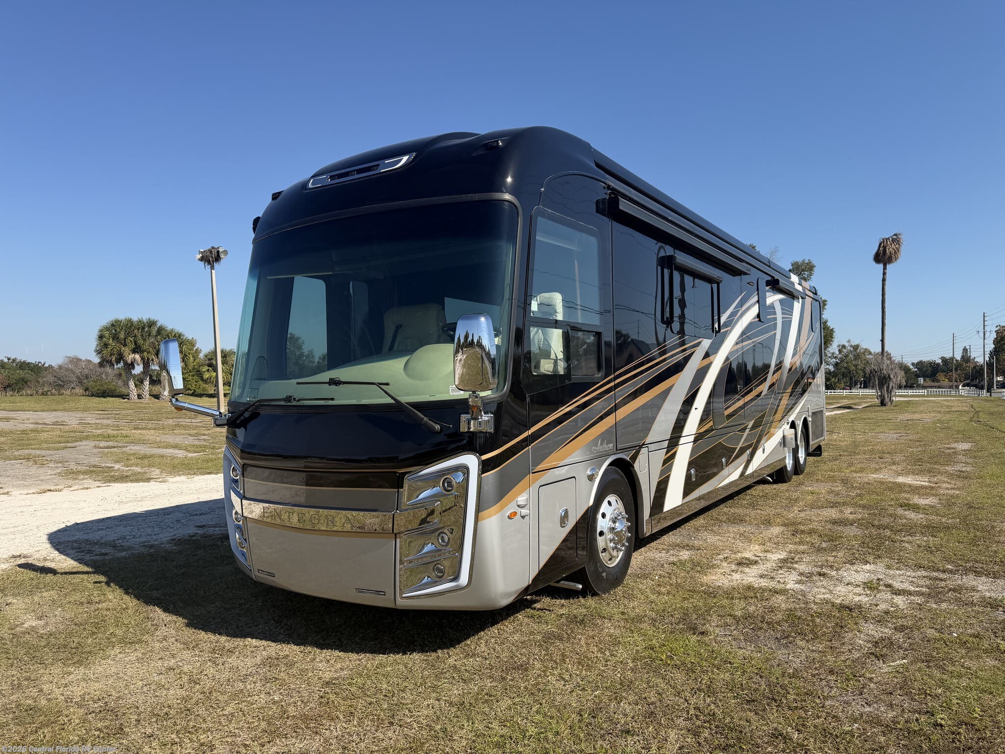2019 Entegra Anthem 44B 4 slide motorhome with 17,233 miles. This coach is on a Spartan Chassis powered by a 450HP Cummins Diesel with Allison Transmission. This unit includes Entertainment Center with Fireplace, Dinette Table, Residential Refridgerator, Washer/Dryer, Aquahot w/ In Floor Heat, King Bed, Outside Entertainment & More!!