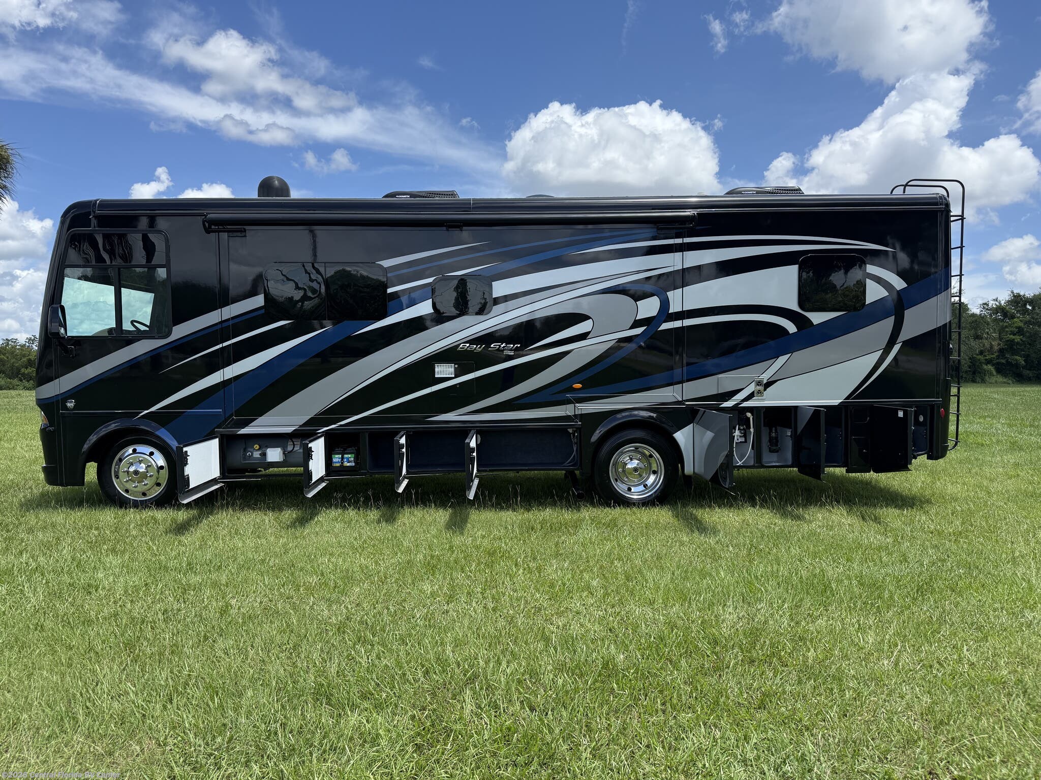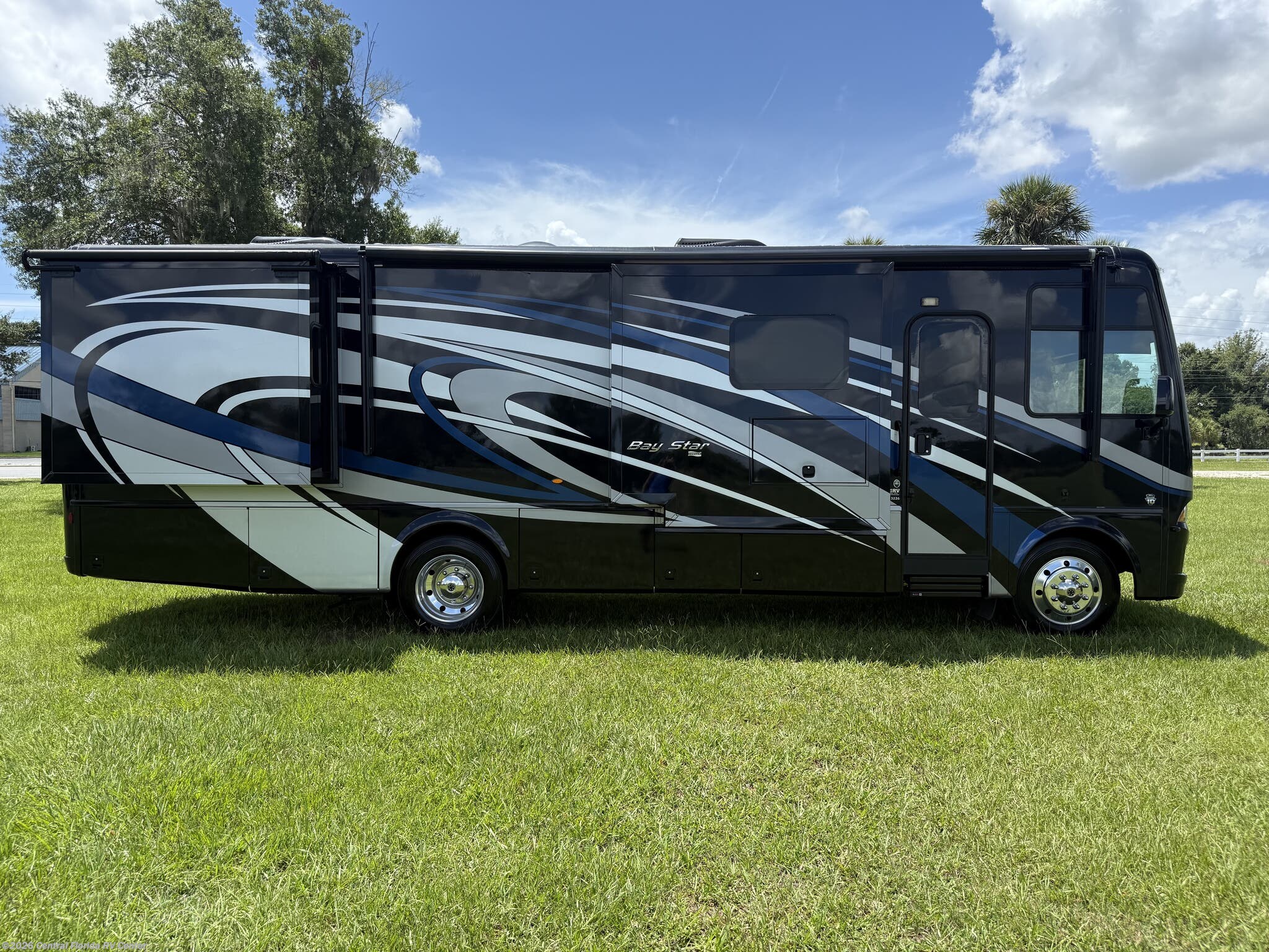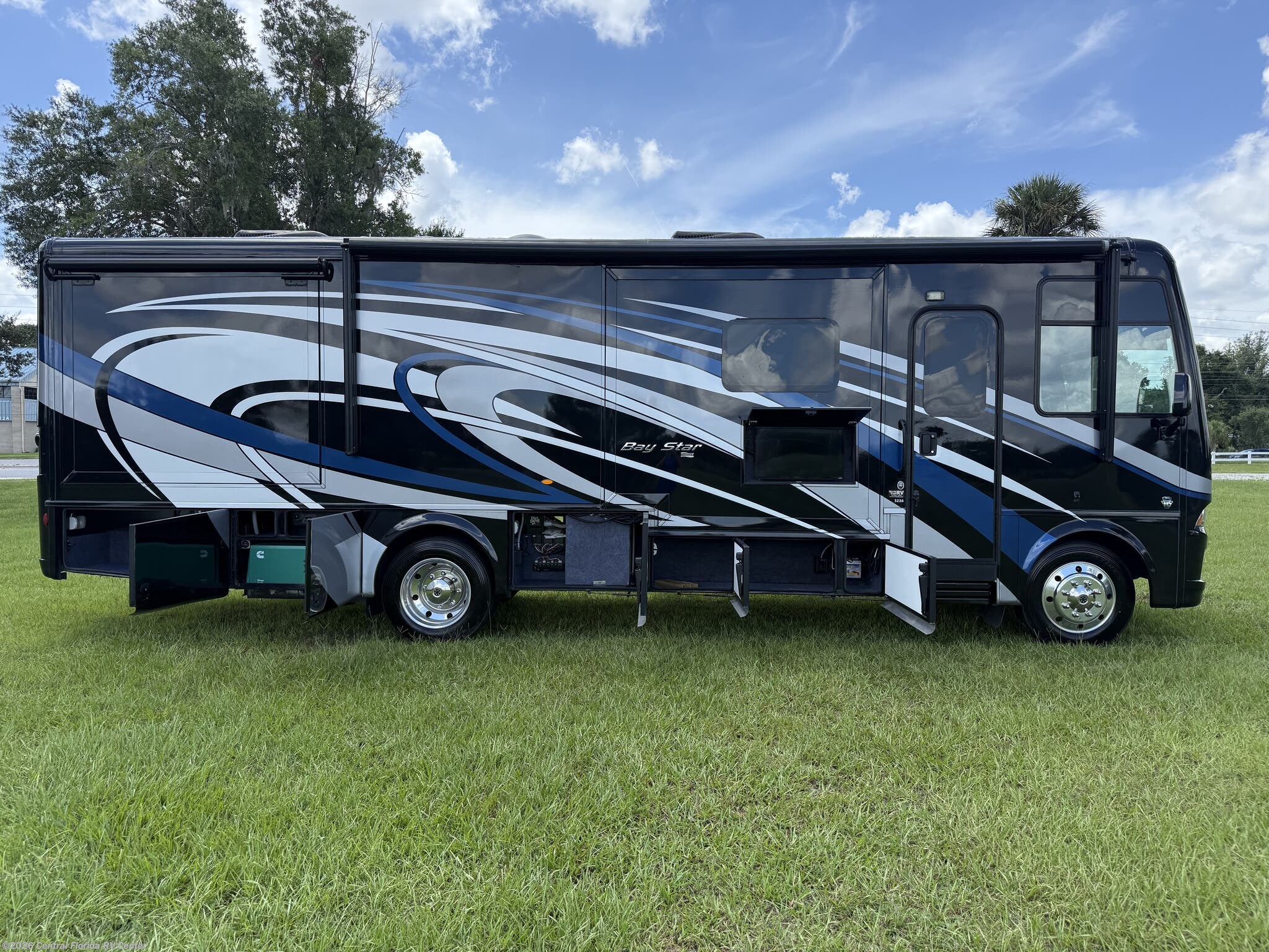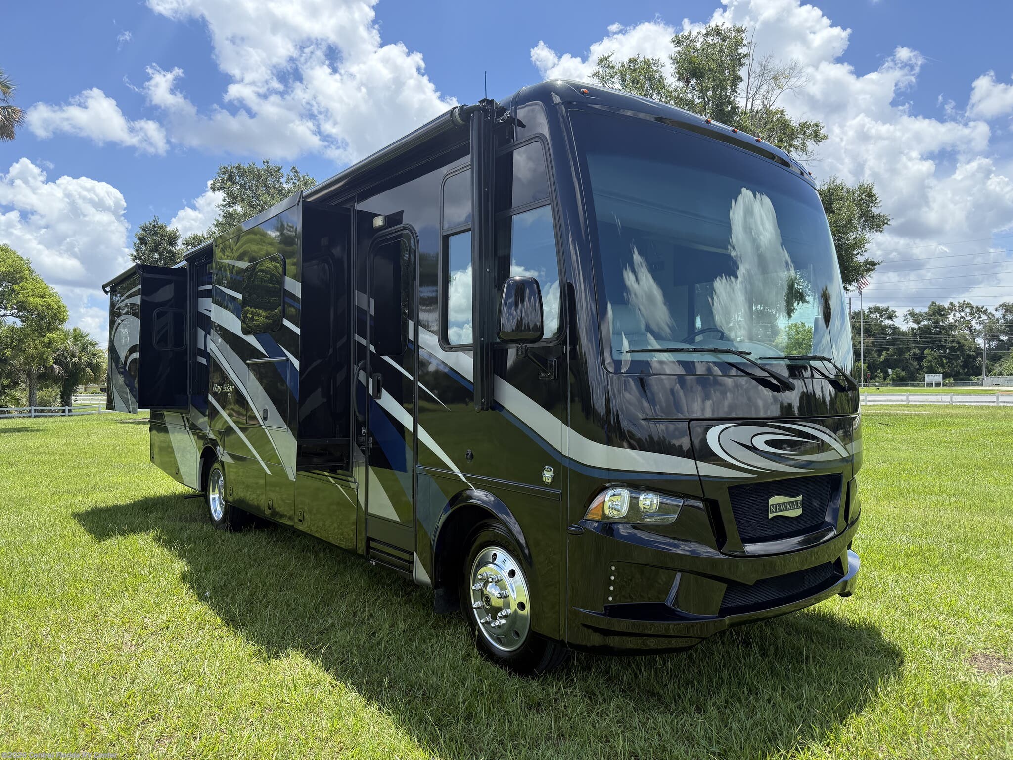 2019 Newmar Bay Star 3226 3 slide motorhome with 38,817 miles. This coach is on a Ford Chassis powered by a Triton V10 Engine with 320HP. This coach includes brand new tires, convection microwave, outside entertainment, whirlpool refridgerator with inverter, drop down bunk, folding cockpit table, King Bed & more!!