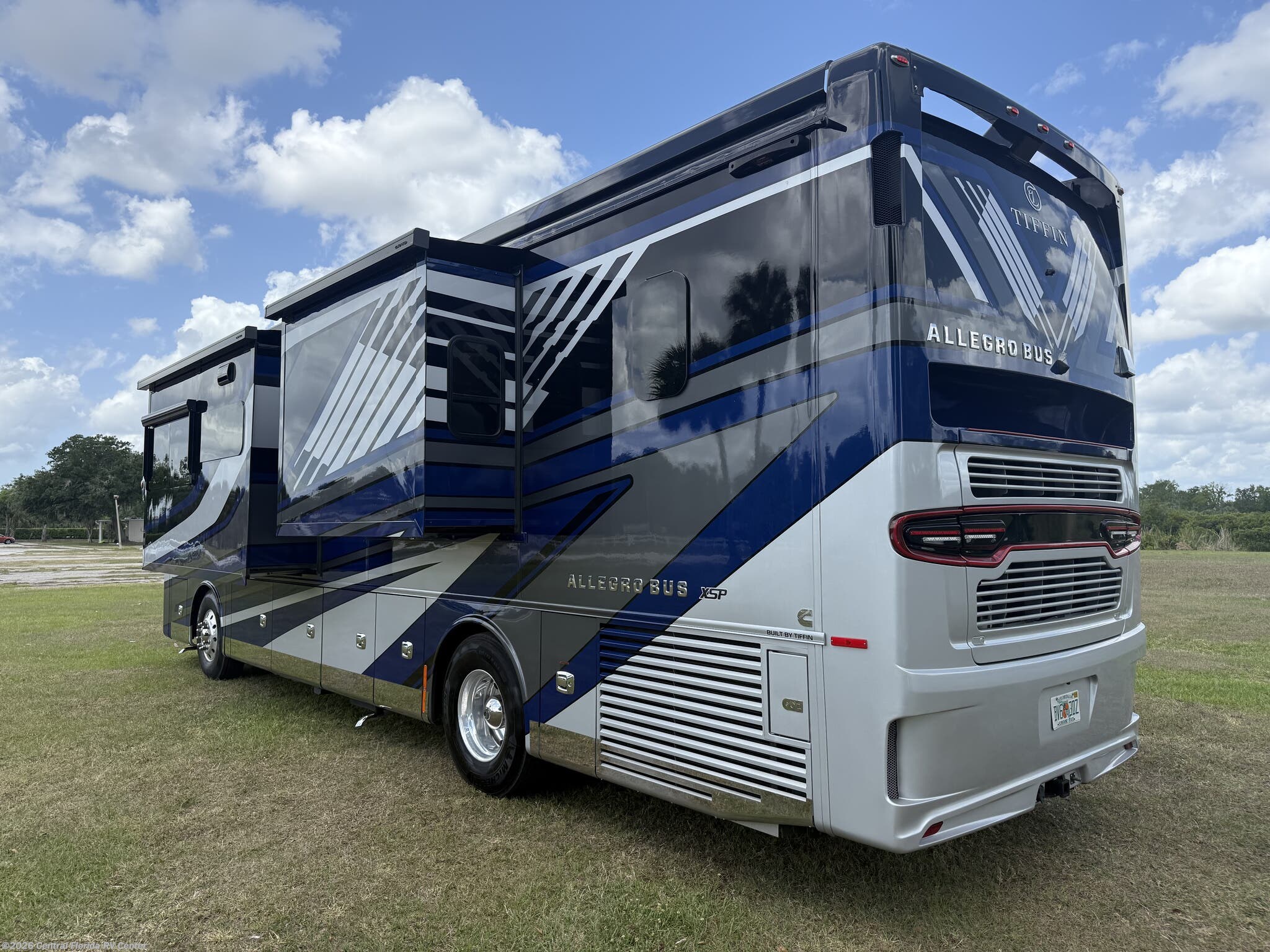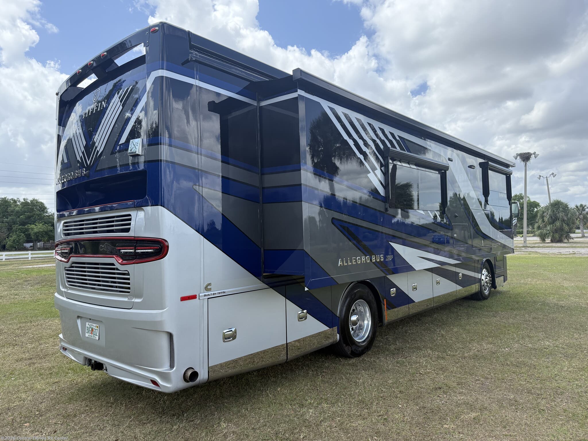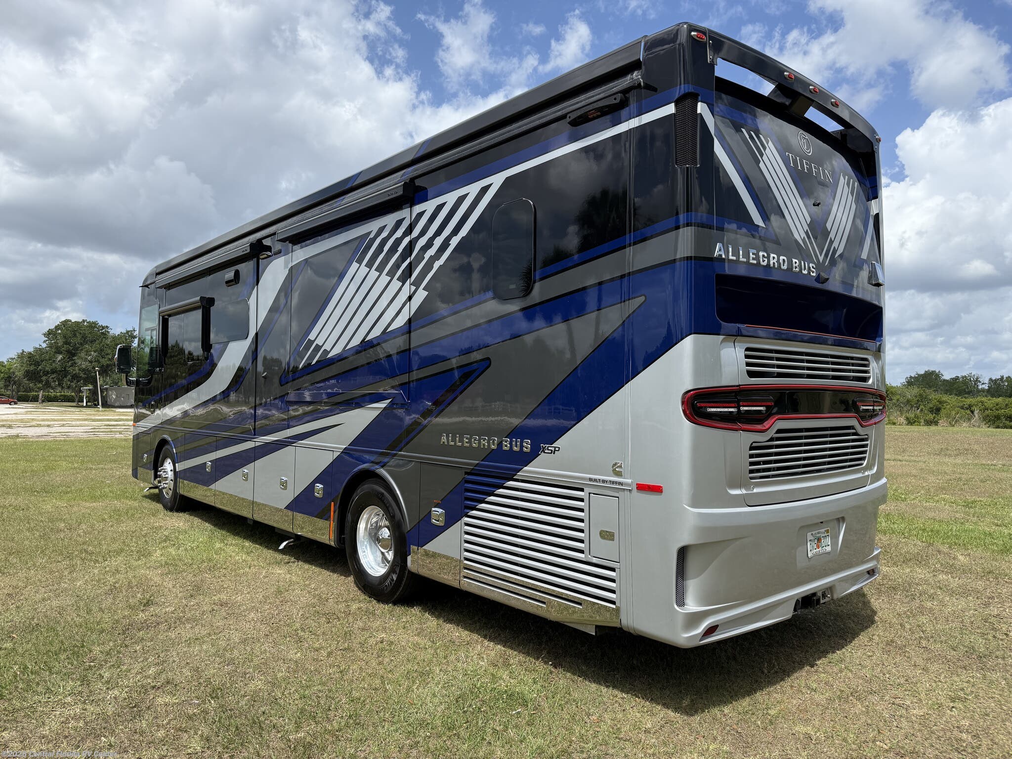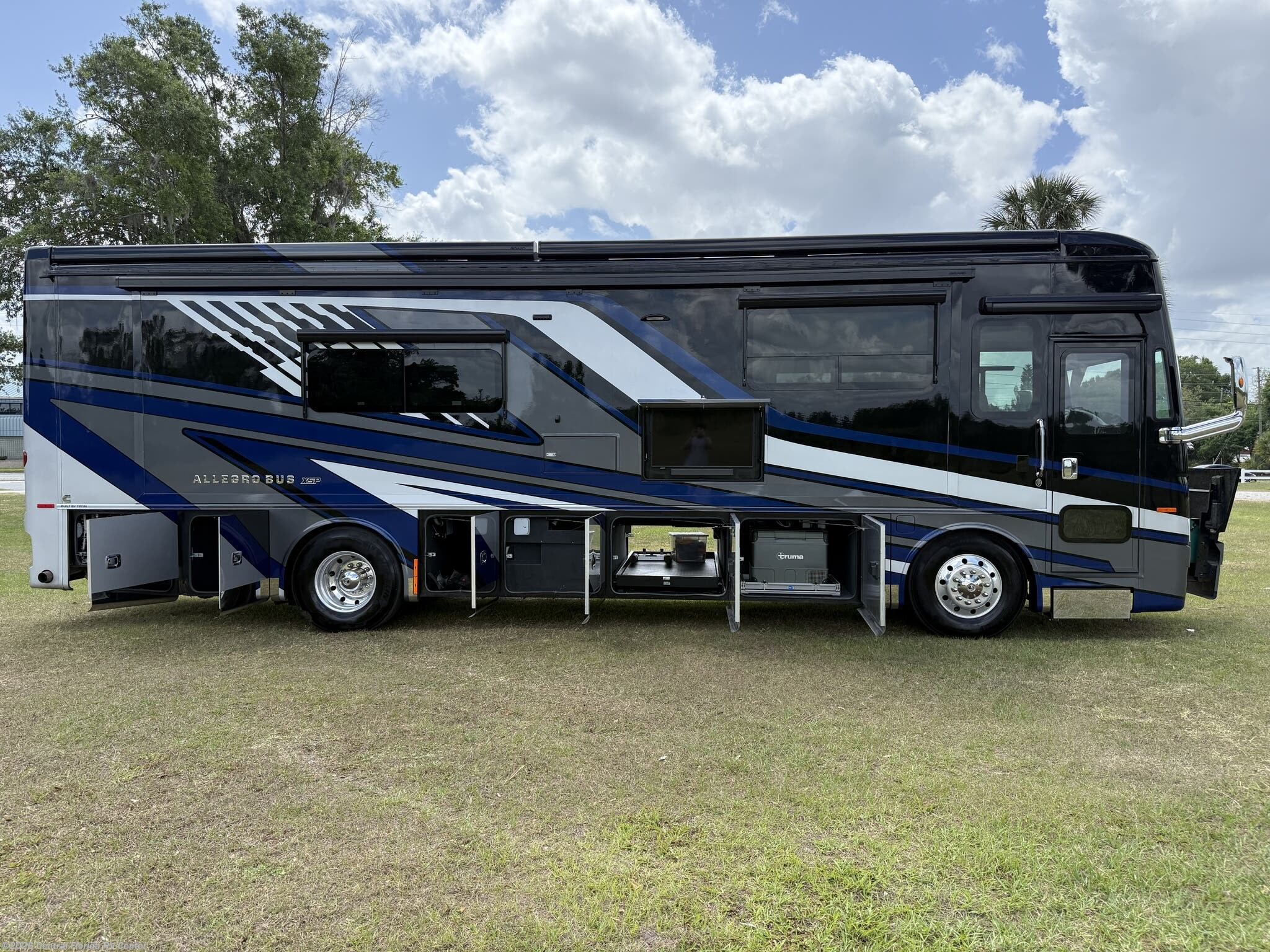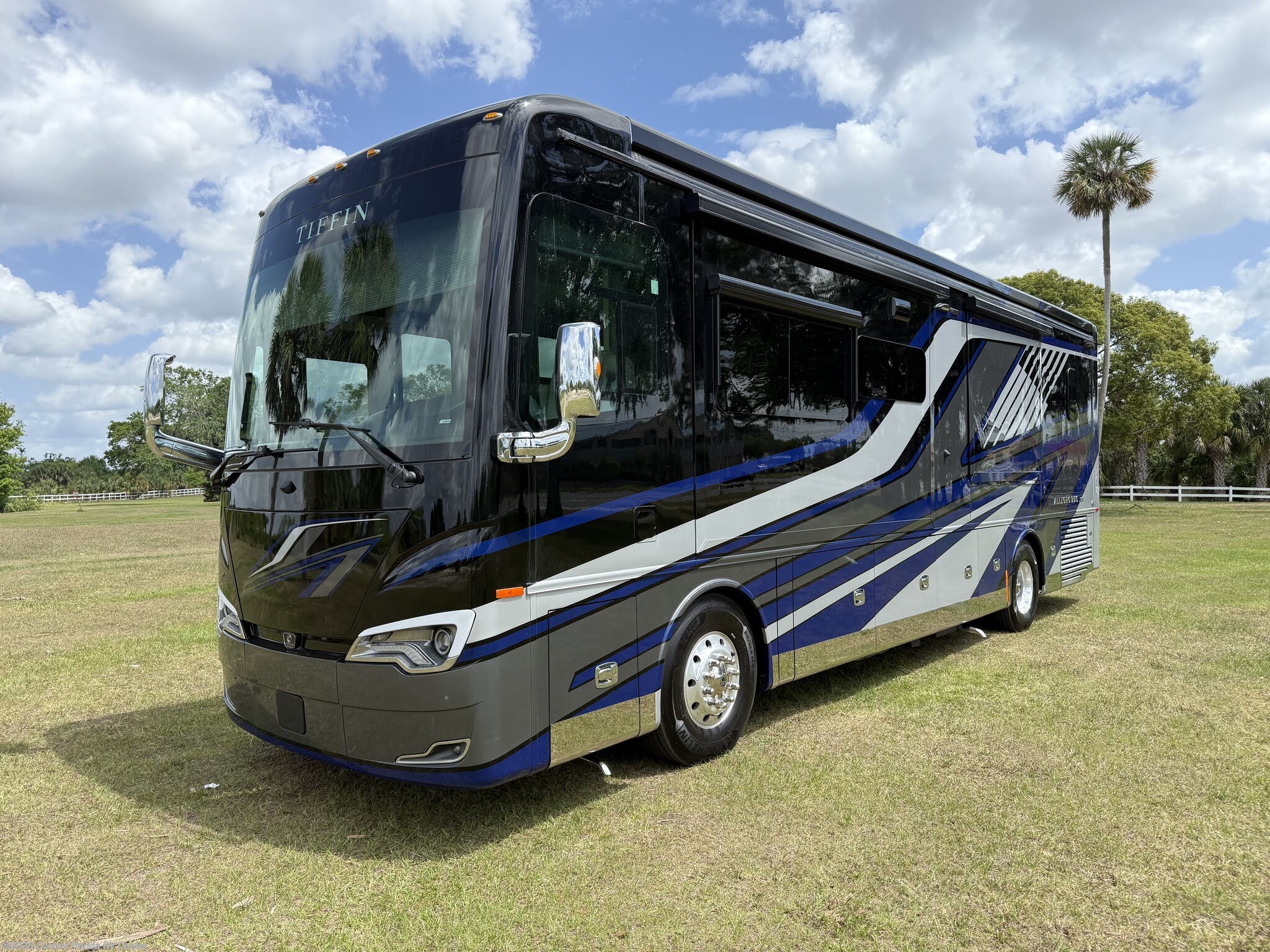 2024 Tiffin Allegro Bus 35CP 3 slide motorhome with 14,212 miles. This coach is on a Powerglide Chassis powered by a 450HP Cummins Diesel with Allison Transmission. This coach is fully loaded & includes 2 Patio Awnings, Basement Freezer, 12" Beverage Center, 360 Camera View, Cell phone service booster, Dishwasher, Pass through storage w/ electric slide tray, fireplace Bedroom, Heated Tile Floor, Lithium Batteries, Power Window Awnings, 3 Solar Panels, Stainless Trim package, stacked washer/dryer, Theatre Seating, King Bed & more!!