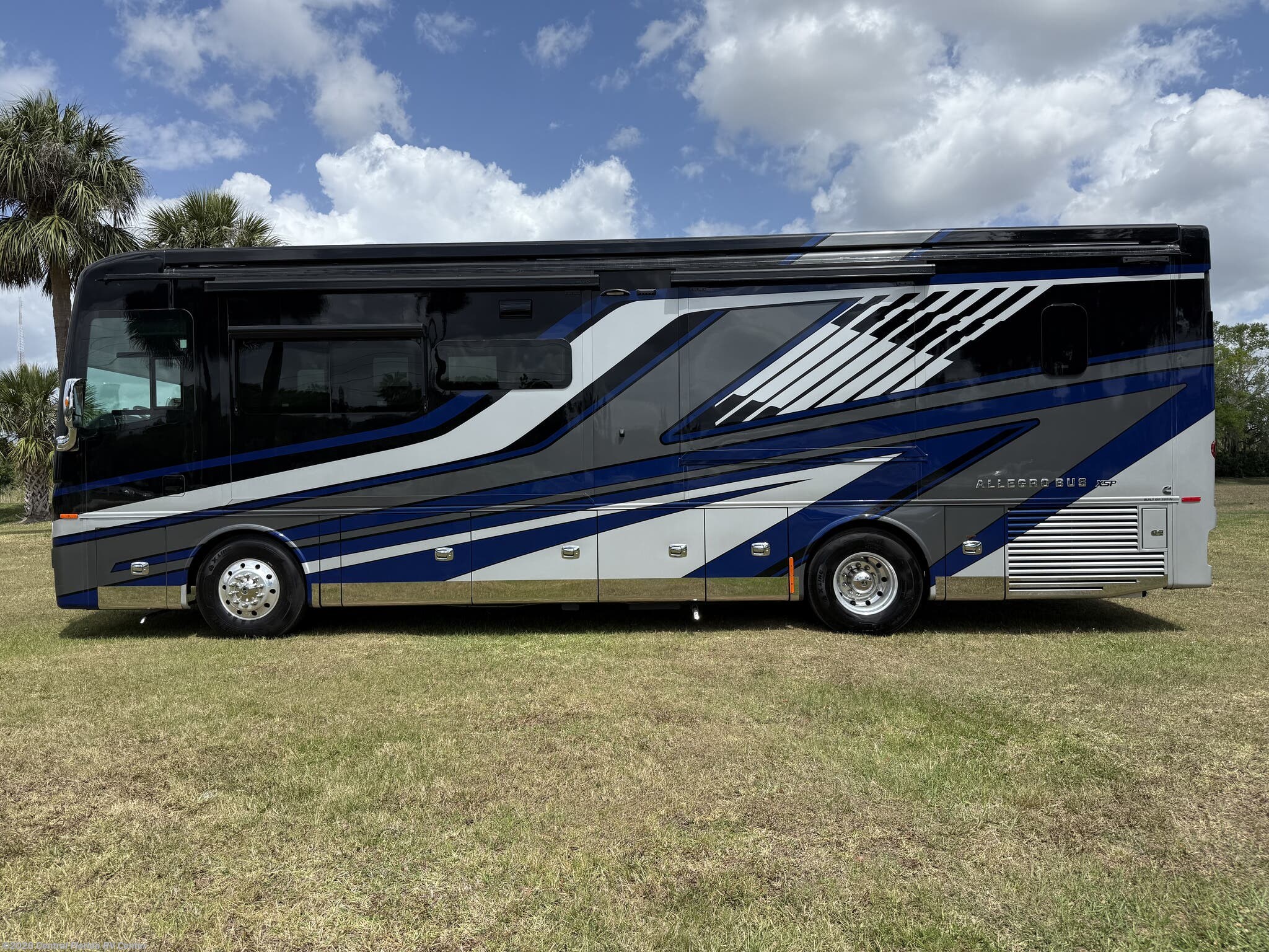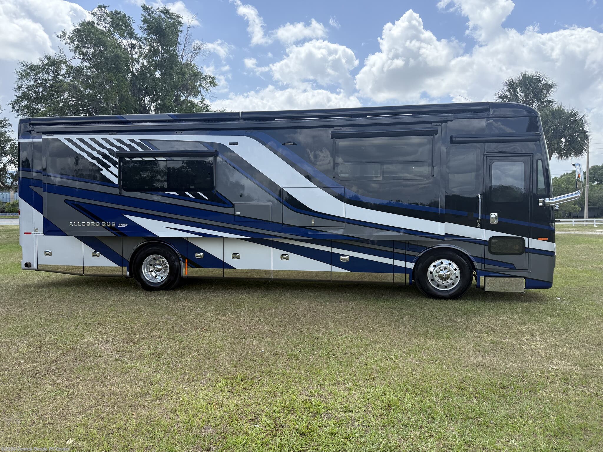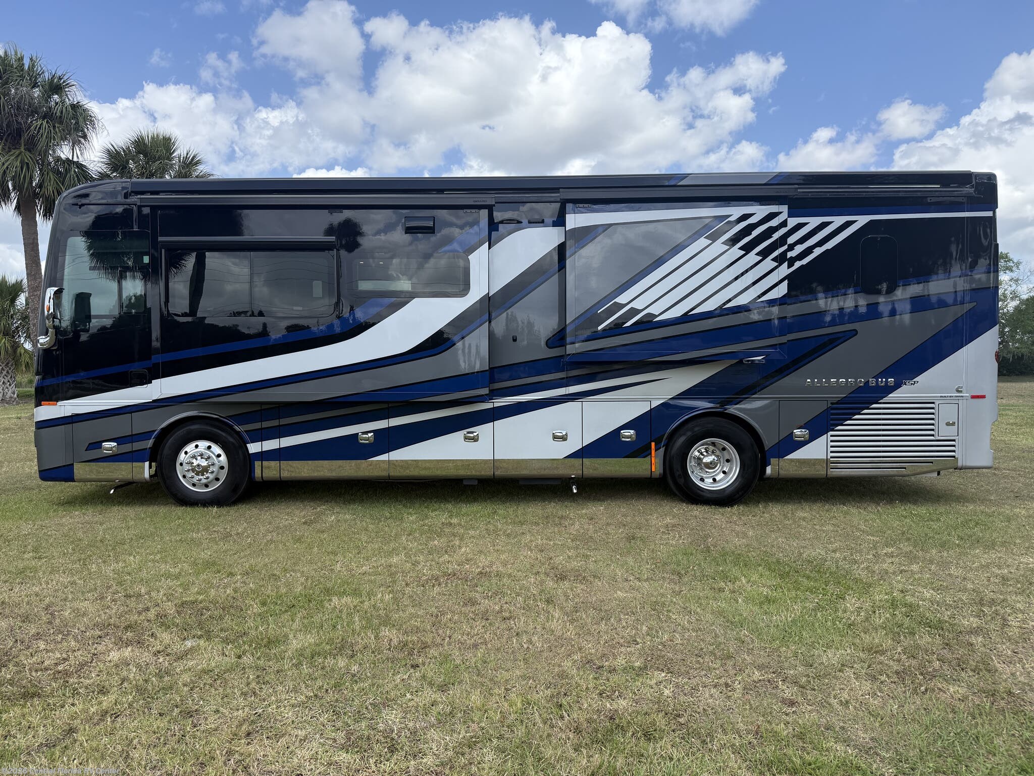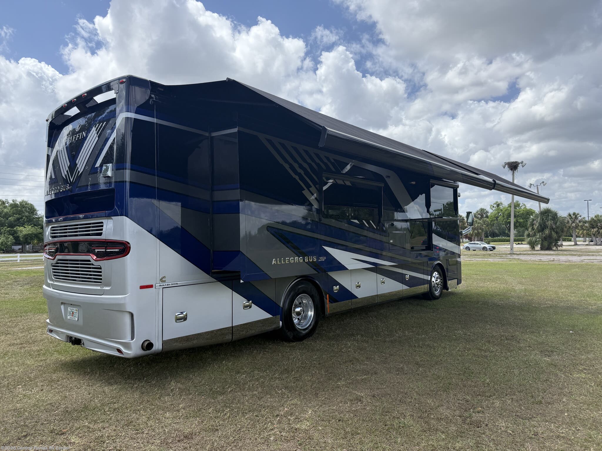 2024 Tiffin Allegro Bus 35CP 3 slide motorhome with 14,212 miles. This coach is on a Powerglide Chassis powered by a 450HP Cummins Diesel with Allison Transmission. This coach is fully loaded & includes 2 Patio Awnings, Basement Freezer, 12" Beverage Center, 360 Camera View, Cell phone service booster, Dishwasher, Pass through storage w/ electric slide tray, fireplace Bedroom, Heated Tile Floor, Lithium Batteries, Power Window Awnings, 3 Solar Panels, Stainless Trim package, stacked washer/dryer, Theatre Seating, King Bed & more!!
